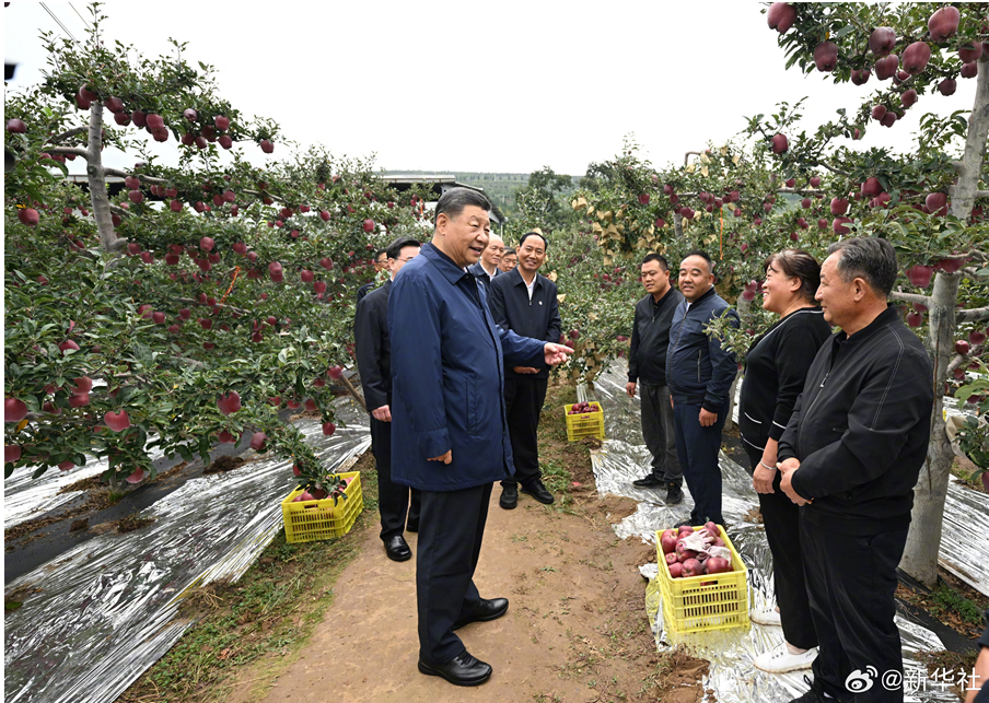 11日上午,习近平总书记来到甘肃天水市麦积区南山花牛苹果基地考察,走进果林向现场的果农、农技人员等详细询问花牛苹果品质特色、种植技术、市场销路等,并同乡亲们亲切交流。习近平说,乡村振兴要靠产业,各地要各展其长,走适合自己的振兴道路。习近平勉励乡亲们再接再厉,把苹果产业做得更大更强,过上更加幸福的生活。(文字记者:张晓松、朱基钗;摄影记者:鞠鹏、谢环驰)