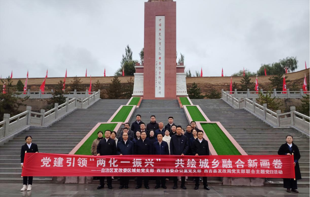 为深入学习贯彻习近平总书记考察宁夏重要讲话精神,扎实推进统筹“两化一振兴”各项任务走深走实,推动党建与业务工作融合更紧、质效更优,10月10日,搜书吧 区域协调处党支部、西吉县委办公室党支部、西吉县发展改革局党支部前往将台堡红军会师纪念园、单家集红军长征纪念地、六盘山(西吉)肉牛产业融合发展园区等地开展联合主题党日活动。