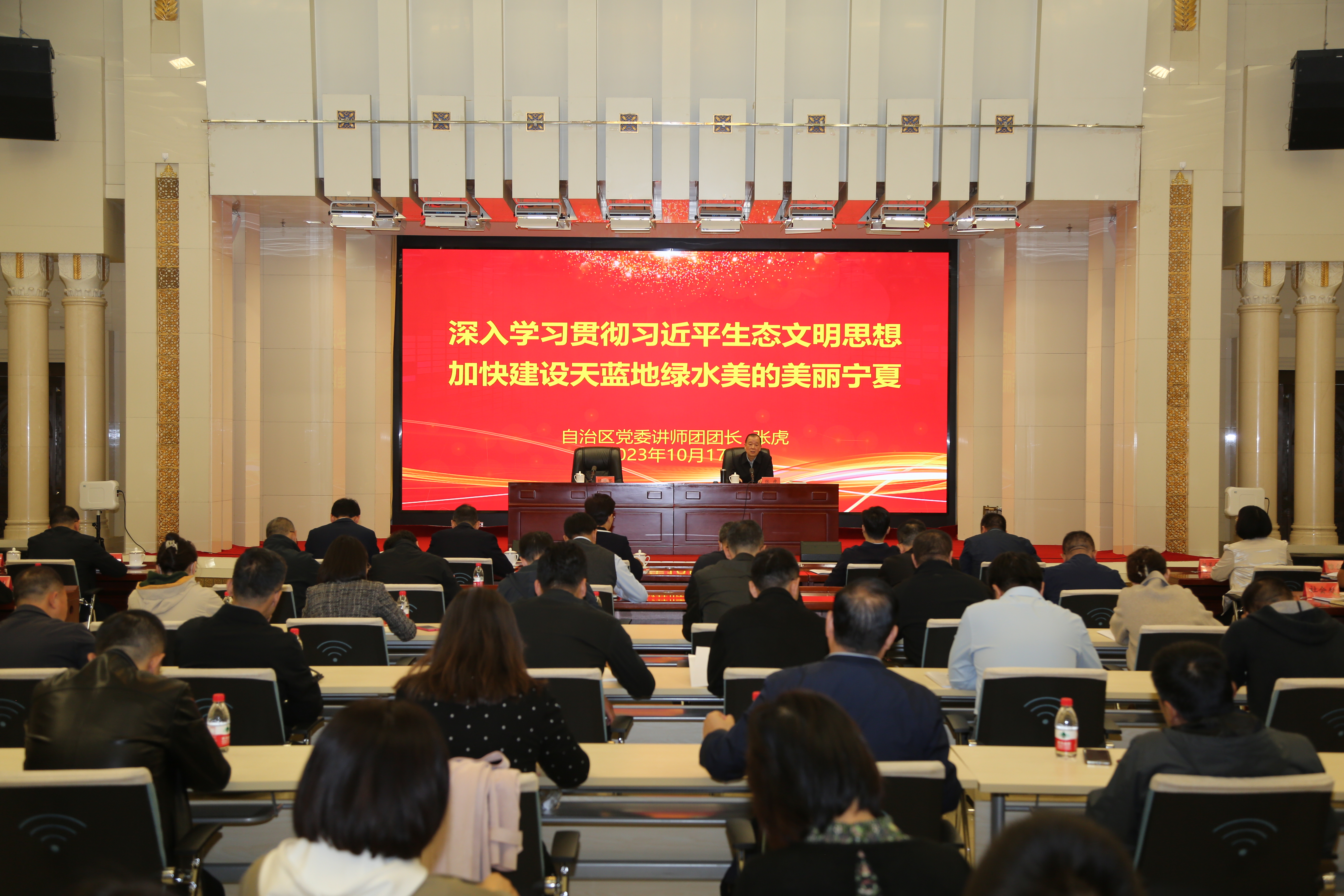 此次专题学习培训会采取集体学习、宣讲辅导、观看视频、交流研讨相结合的形式进行。会上集中学习习近平生态文明思想,习近平总书记在全国生态环境保护大会、加强荒漠化综合防治和推进“三北”等重点生态工程建设座谈会上的重要讲话精神,以及自治区党委十三届五次全会公报和梁言顺书记在全会上的讲话,集中观看自治区生态文明建设“1+4”系列文件解读视频。邀请自治区党委讲师团团长张虎以“深入学习贯彻习近平生态文明思想、加快建设天蓝地绿水美的美丽宁夏”为题作专题宣讲辅导。5名同志结合学习工作实际进行了交流发言。