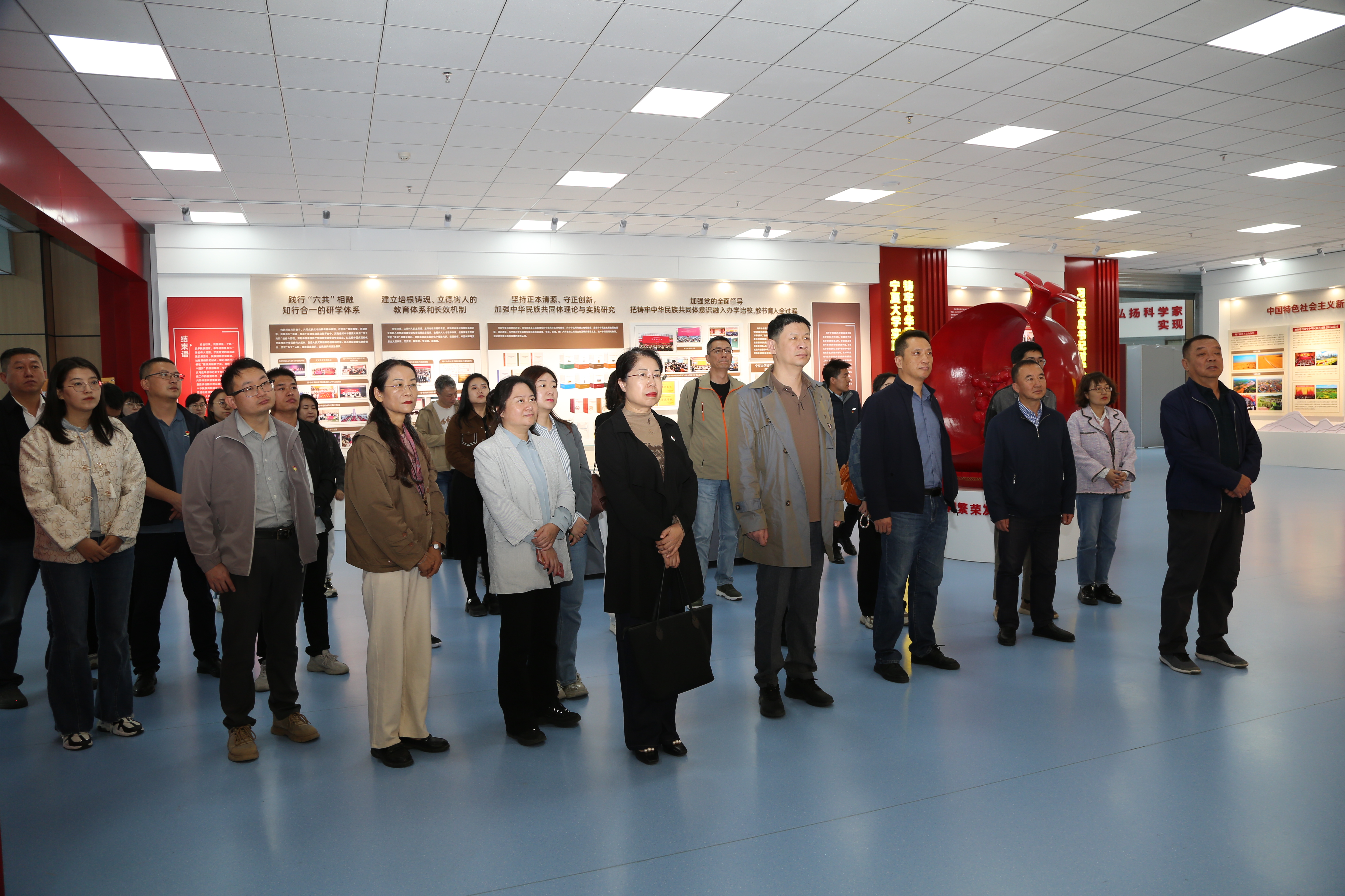 全体党员干部先后前往宁夏大学“石榴花开润塞上——铸牢中华民族共同体意识的宁夏实践”展览馆和宁夏人防宣传教育馆参观学习。